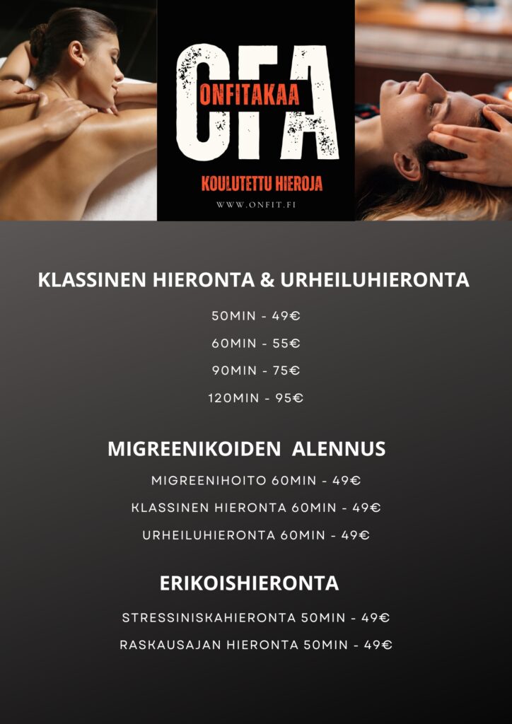 Mahdollista saada pian akuutteja hieronta-aikoja ajanvarauksen ulkopuolelta.